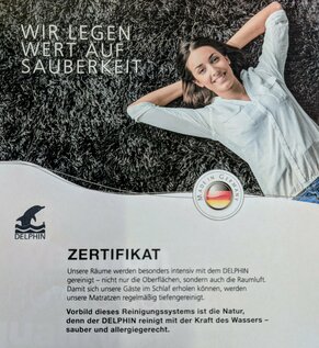 Unsere Räume werden besonders intensiv mit Trockendampf und mit dem DELPHIN gereinigt - nicht nur Oberflächen, sondern auch die Raumluft.
